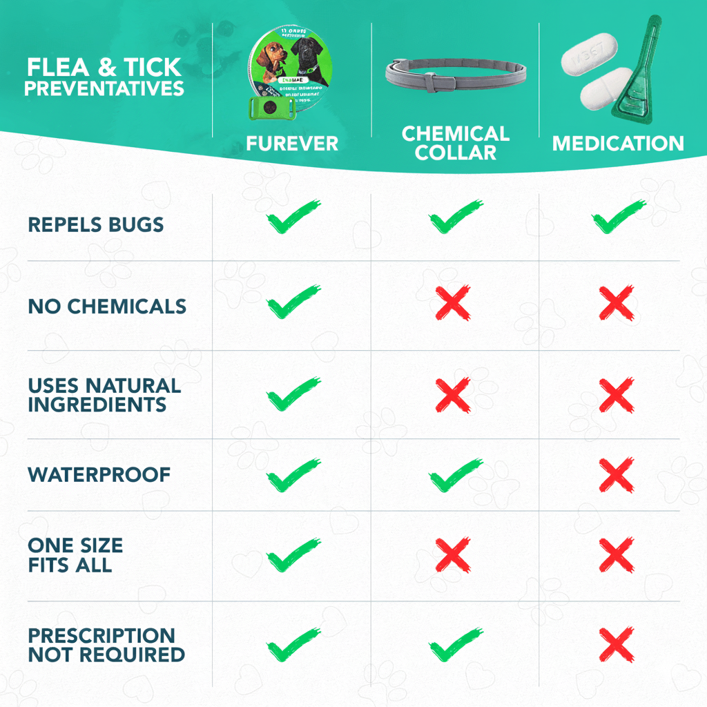 Unlike harsh chemical treatments, FurEver™ contains no pesticides or toxic agents—just safe, effective protection for your pet.